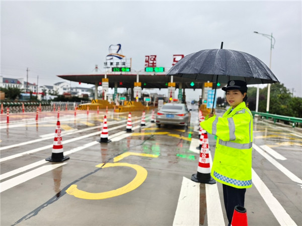 雨幕中,收费班长杜润艳的身影格外醒目。她穿着反光雨衣,在车道间来回穿梭,引导车辆有序通行。“请小心驾驶,雨天路滑,注意保持车距!”每当有车辆驶入车道,她都不忘送上一句安全提示,尽管声音已经沙哑,但依然坚持逐车提醒。“越是恶劣天气,越需要我们坚守岗位。”杜润艳抹去脸上的雨水说,“看到司乘人员能够安全快速通行,我们再辛苦也值得。”为应对降雨天气与车流高峰,驿马收费站提前落实“一站一策”保畅方案,通过客货分道通行、开启小型客车专用通道等举措提升通行效率,班长合理安排人员靠前值守,实时排查设备隐患与路面风险,成为现场处置的“主心骨”。