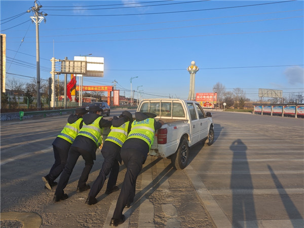 车辆安置妥当后,他们再次叮嘱司机注意安全,并协助联系了附近的维修人员。临行前,惊魂未定的司机紧紧握着他们的手,连声道谢:“太感谢你们了!这天寒地冻的,还这么热心地帮我,真是太暖心了!”
