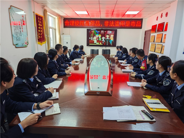 学法懂法,筑牢思想“防火墙”。值班站长沈凡组织员工学习了《中华人民共和国禁毒法》《戒毒条例》以及《麻醉药品和精神药品管理条例》等国家法律法规,员工们清晰地认识了毒品的法律定义、违法后果及国家禁毒的坚定决心。随后,集体观看了警示教育片《危险的药物》,片中触目惊心的案例深刻揭示了毒品对个人健康、家庭幸福和社会稳定造成的巨大破坏,以直观、震撼的方式让“珍爱生命、远离毒品”的理念深入人心,有效提升了员工对各类毒品,尤其是伪装性、迷惑性强的药物的警惕性。