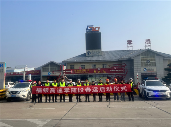 2026年春运从2月2日开始,至3月13日结束,为期40天。为全力保障春运期间大队辖区路段安全畅通,切实守护群众平安返乡路,2月2日上午,湖北省交通运输综合行政执法总队高速公路路政执法三支队一大队联合湖北省高速警察支队云梦大队、湖北交投实业孝感服务区、湖北省高速公路实业开发有限公司、随州市普惠高速公路清障施救有限公司,在孝感服务区隆重举行“平安春运护航行”2026年度春运启动仪式,正式拉开春运保畅工作序幕。